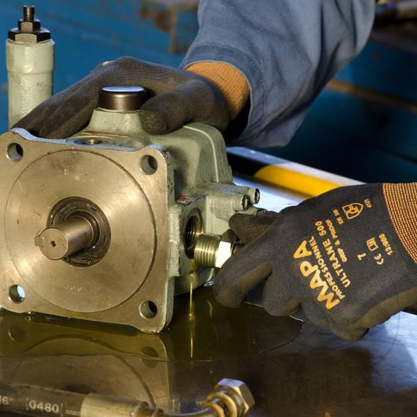 MAPA® arbejdshandsker Ultrane 500 Grip & Proof Disse mekaniske handsker er ideelle til arbejdsområderne: dækskift, montering, demontering, reparation, inspektion / service og vedligeholdelse Velegnet til skæring, stansning og prægning, til vedligeholdelsesarbejde i et vådt og fugtigt miljø (vand, olier, fedt, kulbrinter) og til behandling / håndtering af metalplader, glasplader, skarpe kanter, små dele og olieagtige maskindele Indvendigt med sømløst strikstof / strikjersey God pasform - komfortabelt passende med strikkede manchetter på håndleddet Nitril dyppet og slibet, håndens bagside er ubelagt Overfladen med Grip & Proof-belægning lavet af nitril giver fremragende greb i et olieagtigt miljø til at udføre arbejde nøjagtigt, minimerer muskeltræthed og øger dermed produktiviteten Olieresistent: ingen olieindtrængning og reduceret dermatitis (hudbeskyttelse) Nitril tilbyder meget god resistens over for olier, fedtstoffer og carbonhydridderivater såvel som aromatiske eller klorerede opløsningsmidler og er meget venlige overfor huden, selv med lang brugstid Fremragende slidstyrke og høj økonomisk effektivitet på grund af den lange levetid Størrelse: 10 Længde: 26 cm Farve: mørkeblå / sort Materiale: Specielt greb & bevisbelægning lavet af nitril Leveringsomfang: 1 par
