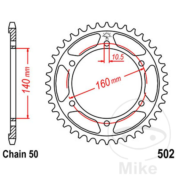 Kædehjul 48z,str. 530 INDVENDIG DIAMETER 140 BOLT AFSTAND 160