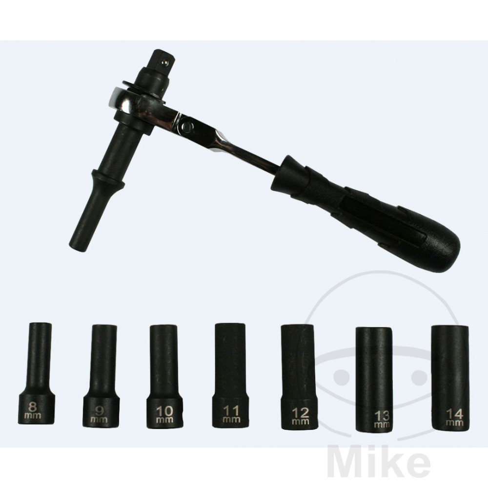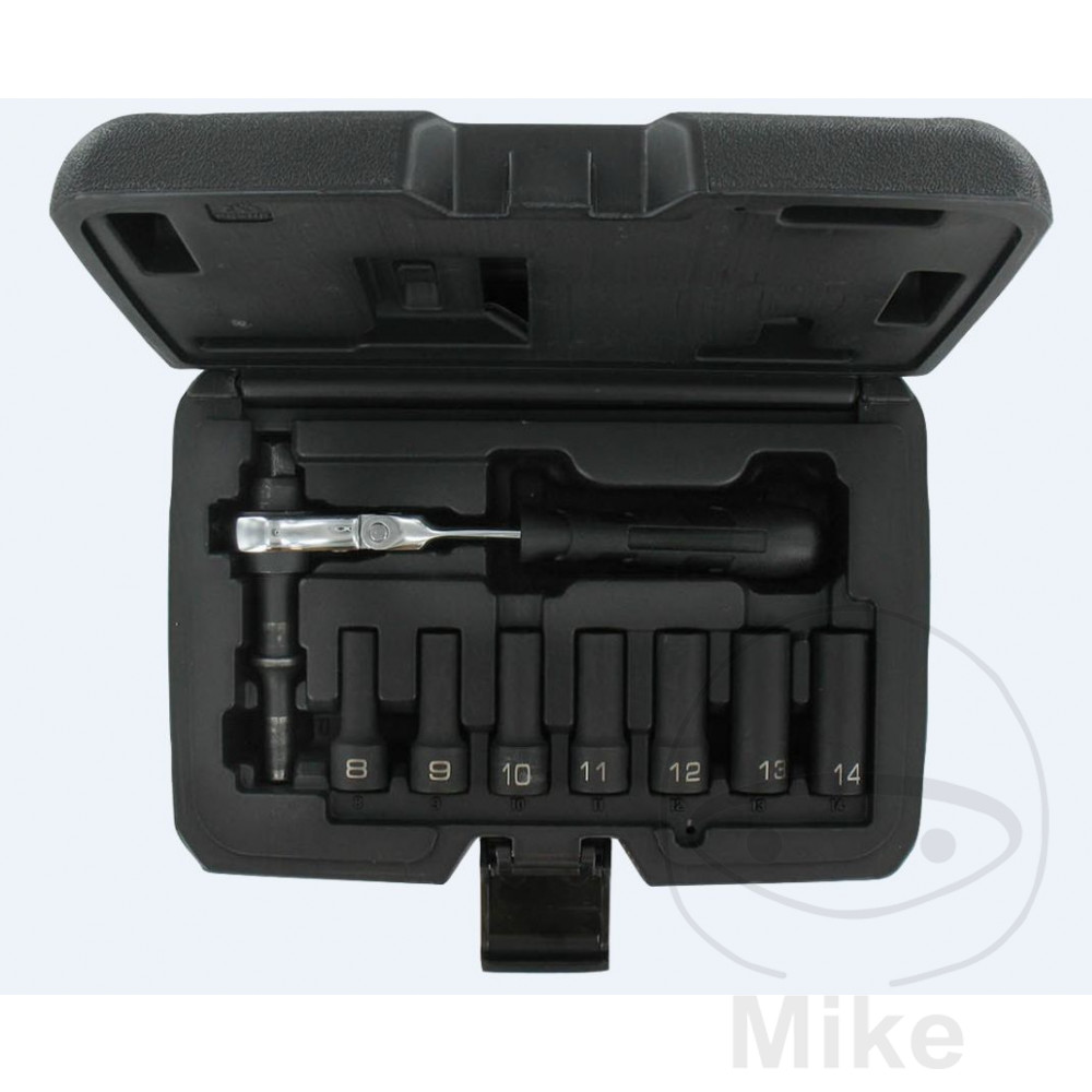 Leveringsomfang: adapter med lednøgle, 1 stk. Hver 3/8 "stikkontakt 8, 9, 10, 11, 12, 13 og 14 mm, cpl. i kufferten