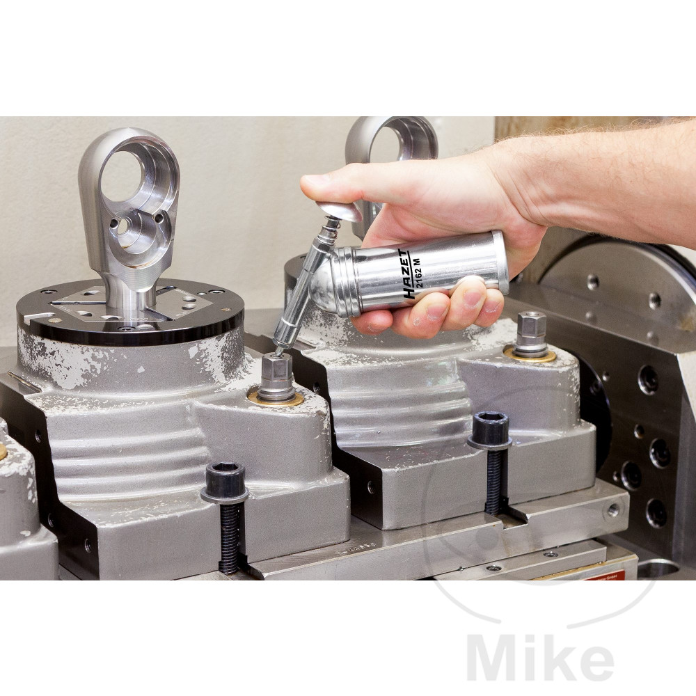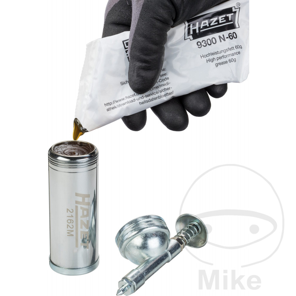 Hazet mini fedtpistol 2162M   Til præcis smøring af hammermekanismer, spindler osv.   - Påfyldningsmængde: 80 g - Genererer tryk på op til 1.000 PSI / 69 bar - Til fyldning med løst fedt - Inkl. Smørenipler i 50 ° og 90 ° versioner - Samlet længde: 145 mm - Nettovægt: 270 g