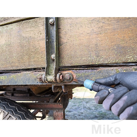 Hazet Mini nålescaler   Skånsom rengøring af snavsede/rustede dele, især rengøring af bremsesystemer osv. Justerbar nåleskinne med integreret nålestyring sikrer lang levetid 13 tynde nåle i rustfrit stål (1,3 mm) sikrer skadesfri behandling og en meget fin overfladestruktur 28 mm slank/kort stiftform og frie nåle giver også adgang til vinklede områder Velegnet til bearbejdning af rustfrit stål 3000 slag/min. 360° justerbart luftudtag Sikkerhedsudløserhåndtag Trinløs justerbar effekt   Tekniske data: Håndtag Koldt isolerende håndtag Nettovægt (kg) 0,48 kg Luftbehov [l/min] 48,1 l/min Dimensioner 235.6 mm Længde 235,6 mm Vibrationsacceleration 6,90 m/s2 Lydtryksniveau (ved driftstryk) 87,9 dB(A) Lp A Lydeffektniveau (ved driftstryk) 98,8 db(A) Lp W   Leveringsomfang: 1x Hazet Mini nålescaler