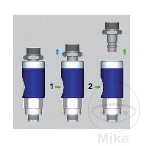 ewo luftfartssikkerhed Komprimeret kobling Ø 6 mm Kobling union Kun VENTILATE - Trin 1: koblingen udluftes ved en enkelt aktivering af trykknappen, hvor proppen-i niplen er yderligere fastgjort i muffen. Så sikkert afkoble - Trin 2: Når der trykkes en gang på trykknappen, plug-in brystvorten er låst op og kan vil sikkert taget. Kobling muffe fremstillet af aluminium Trykknap, ventilhus ring fremstillet af stål, hærdet og galvaniseret Sikkerhed i henhold til ISO 4414 Maksimalt driftstryk: 12 bar Temperaturområde: -20 til +70 ° C Nominel diameter: 7,2 / 7,4 mm Flow: 1.800 l / min.