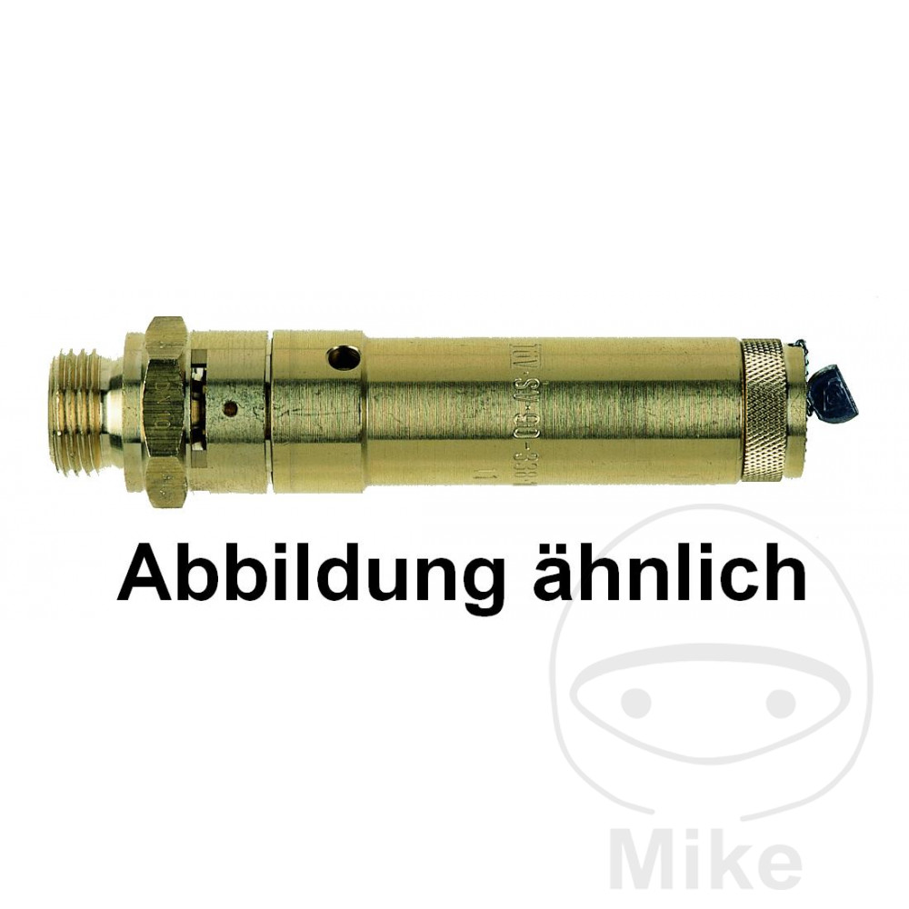 ewo sikkerhedsventil DN 8 Typetestet, Sikkerhedsventiler anvendes til udrensning af ikke-toksiske og ikke-brændbare gasser i atmosfæren til beskyttelse af tryktanke mod overtryk. Specifikationer: Tilslutning tråd: G 3/8 " Gevindlængde: 10 mm Samlet længde: 85 mm SW: 20 mm Indstillet tryk: 9,0-15,0 bar Temperatur -10 ° C til +180 ° C Åbning trykforskel <10% Blowdown <10% (under 3 bar <0,3 bar) Monterings position; vinkelret Materiale: Messing Sealing: FKM (Viton) Seal: Aluminium Tilspændingsmoment (ventil monteret): 13 Nm Vigtig information: Forsyningsledningen til sikkerhedsventilen kan ikke være 3% Eneste fabrik-sæt og loddet sikkerhedsventiler leveres med identifikationskomponenten. Derfor, når du bestiller sættet skal være angivet i kontanter. Til funktionel afprøvning af sikkerhedsventilerne ved at dreje Fingerskrue ventileres. Sædeflader og koniske brystvorter kan skrues hele den øvre del - ryddes af urenheder trængt - uden at indstillingen tryk. Reparationer må kun ved Producenter udføres.