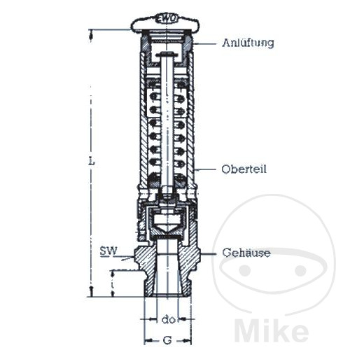 ewo sikkerhedsventil DN 8 Typetestet, Sikkerhedsventiler anvendes til udrensning af ikke-toksiske og ikke-brændbare gasser i atmosfæren til beskyttelse af tryktanke mod overtryk. Specifikationer: Tilslutning tråd: G 3/8 " Gevindlængde: 10 mm Samlet længde: 90 mm SW: 20 mm Sæt tryk: 15,0-20,0 bar Temperatur -10 ° C til +180 ° C Åbning trykforskel <10% Blowdown <10% (under 3 bar <0,3 bar) Monterings position; vinkelret Materiale: Messing Sealing: FKM (Viton) Seal: Aluminium Tilspændingsmoment (ventil monteret): 13 Nm Vigtig information: Forsyningsledningen til sikkerhedsventilen kan ikke være 3% Eneste fabrik-sæt og loddet sikkerhedsventiler leveres med identifikationskomponenten. Derfor, når du bestiller sættet skal være angivet i kontanter. Til funktionel afprøvning af sikkerhedsventilerne ved at dreje Fingerskrue ventileres. Sædeflader og koniske brystvorter kan skrues hele den øvre del - ryddes af urenheder trængt - uden at indstillingen tryk. Reparationer må kun ved Producenter udføres.