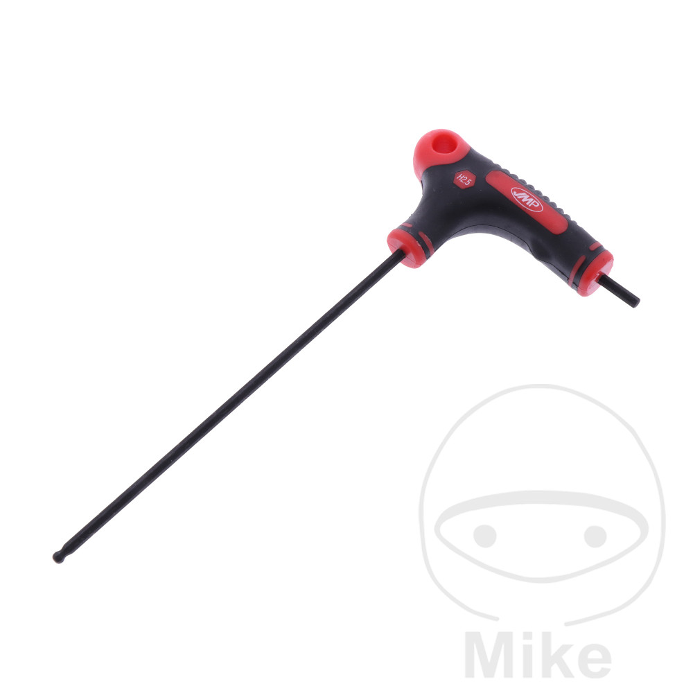 JMP indvendig sekskant T-håndtag SW 2,5 mm   Sekskantnøgle med T-håndtag med kuglehoved i den lange ende ideel til skruer, der er svære at komme til med 2-komponent håndtag hærdet hele vejen igennem Tekniske data: Skruenøgle størrelse 2,5mm længde 160mm   Leveringsomfang: 1x T-håndtag 2mm
